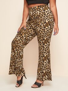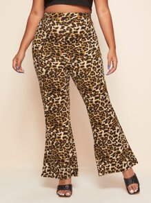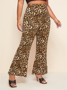 Plus Leopard Print Flare Leg Pants
