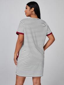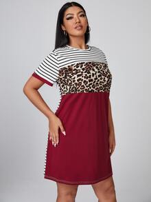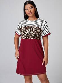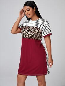 Plus Leopard & Striped Panel Colorblock Tee Dress