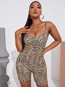 Plus Leopard Unitard Romper