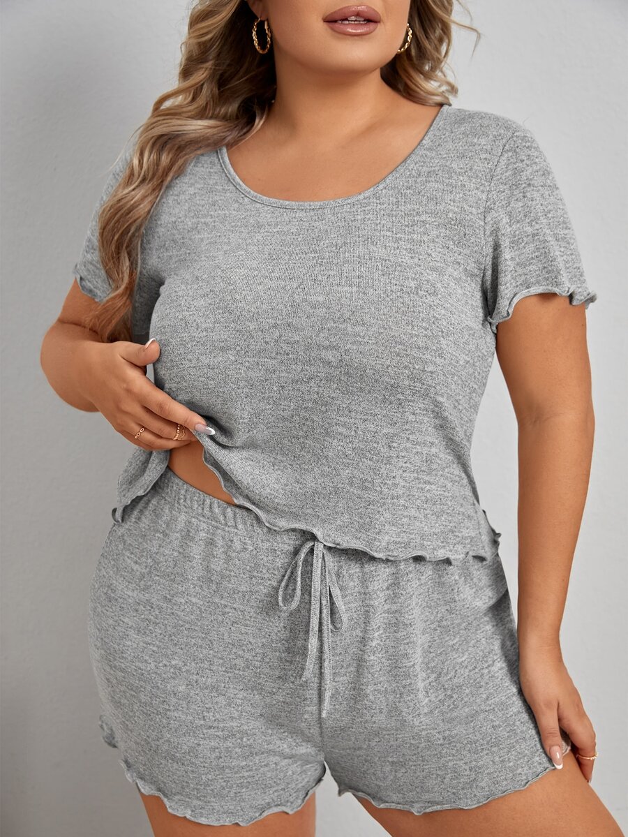 Plus Lettuce Trim Drawstring Waist PJ Set