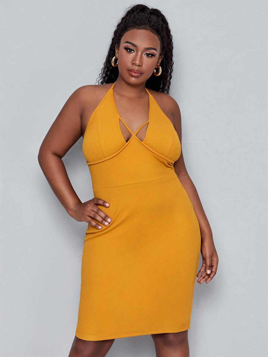Plus Low Back Crisscross Halter Dress