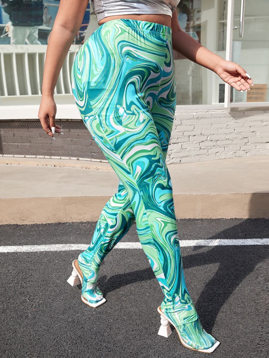 Plus Marble Print High Waist Leggings