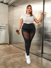 Plus Mesh Panel Crisscross Leggings