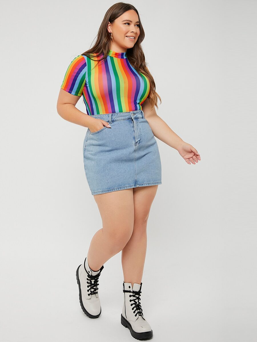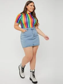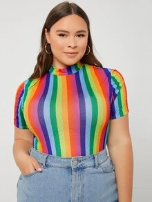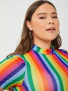 Plus Mock Neck Rainbow Striped Bodysuit