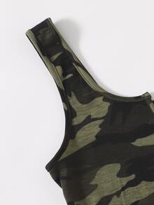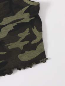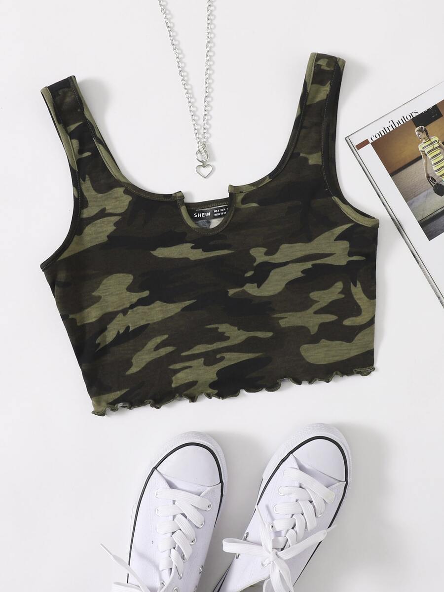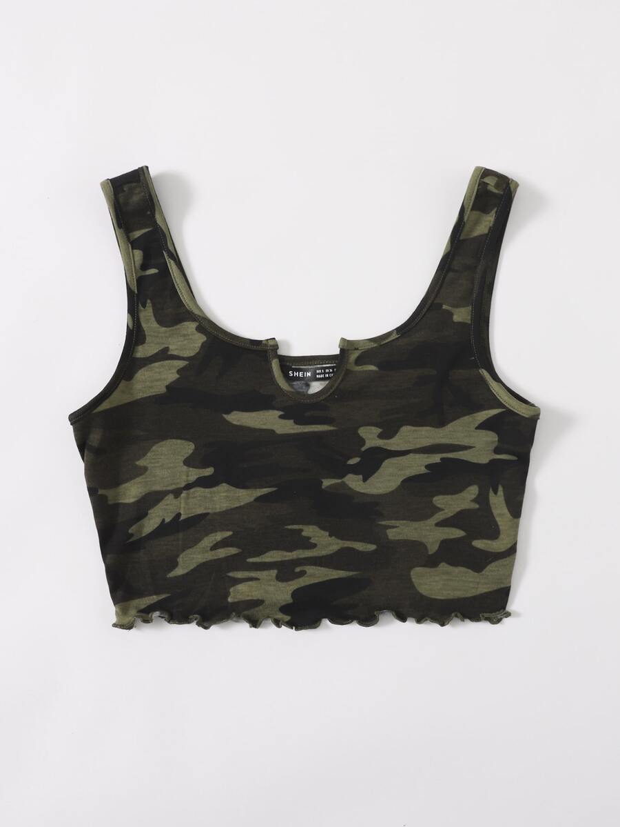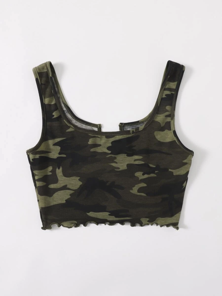 Plus Notch Neck Lettuce Trim Camo Crop Tank Top