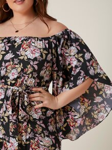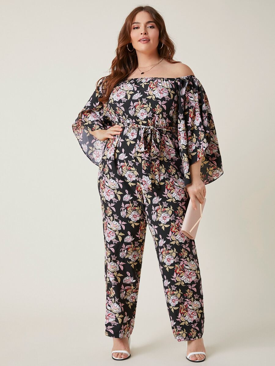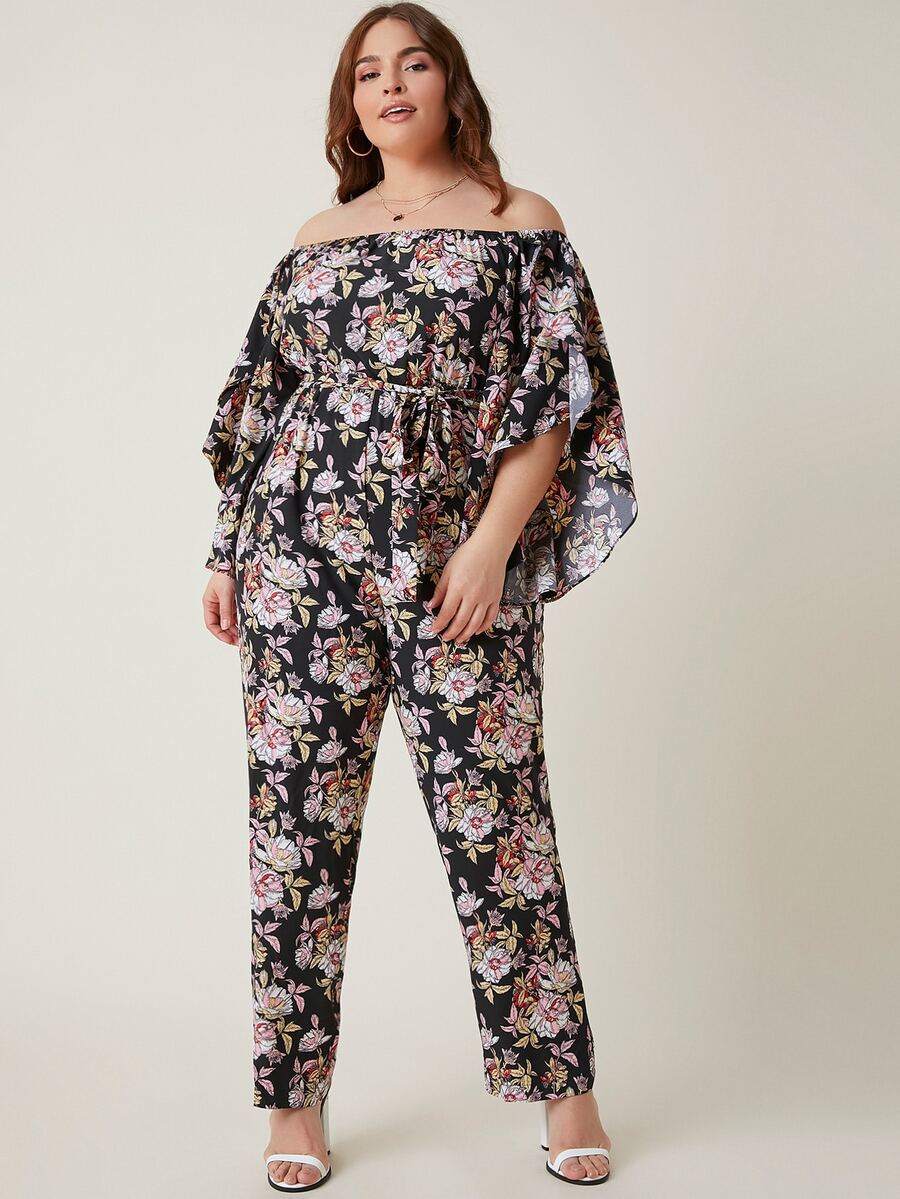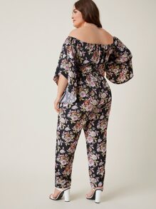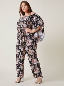 Plus Off Shoulder Cloak Sleeve Floral Jumpsuit