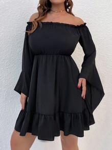 Plus Off Shoulder Flounce Sleeve Ruffle Hem Dress