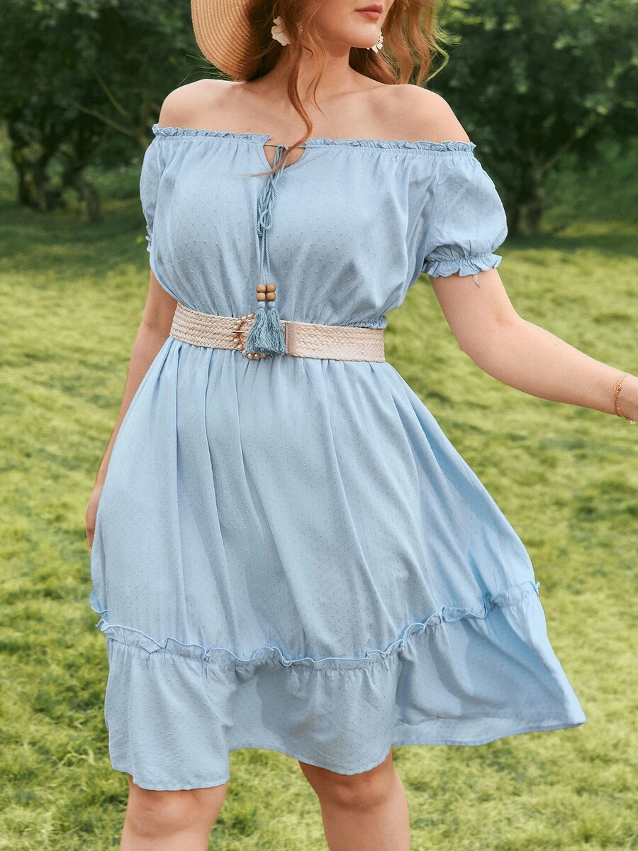 Plus Off Shoulder Frill Trim Tie Neck Dress Without Belt