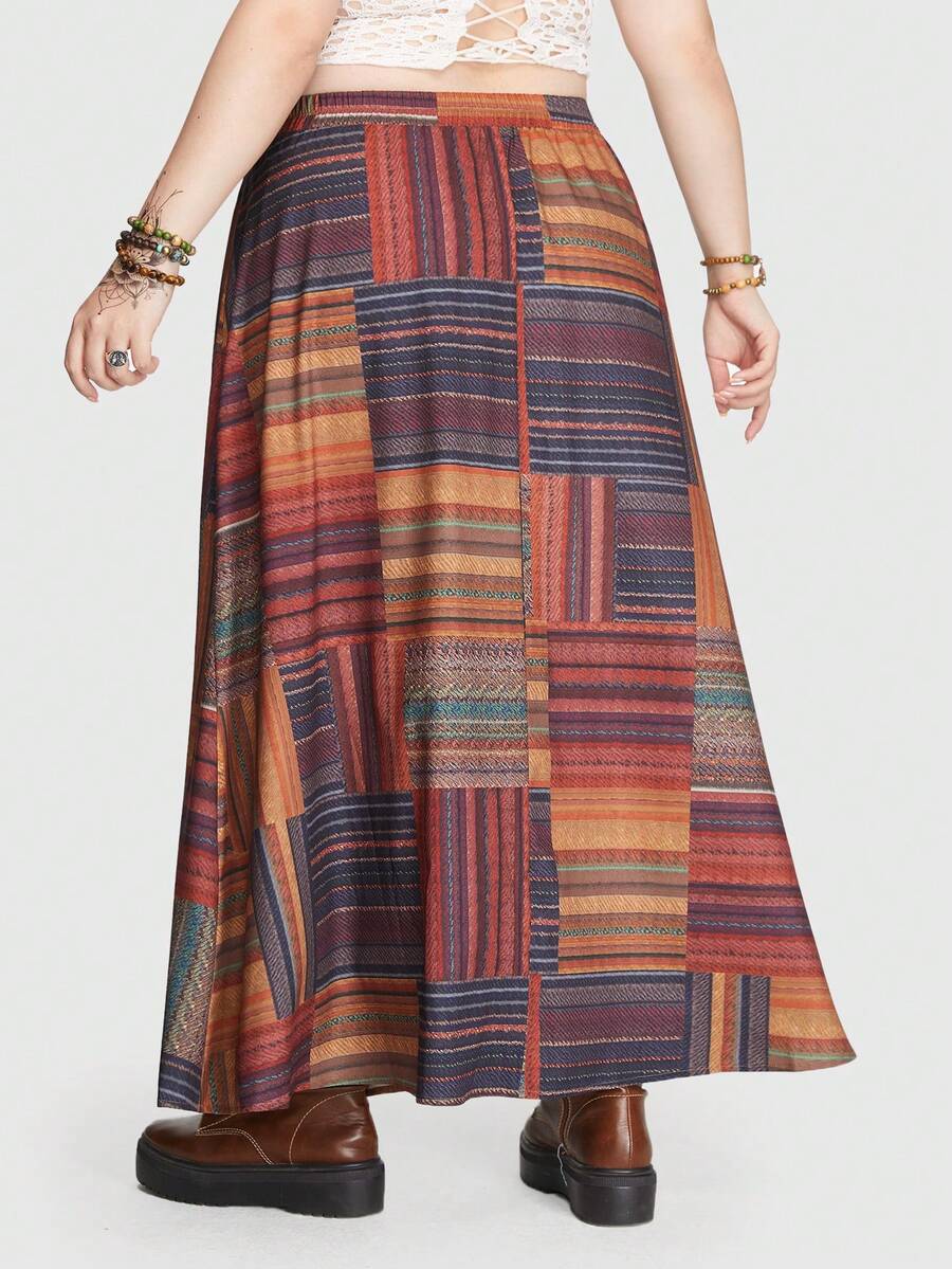 Fairycore Plus Patchwork Print Drawstring Waist Skirt