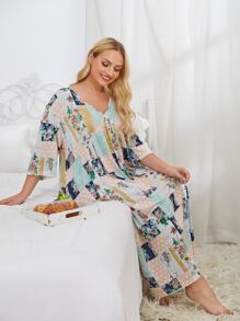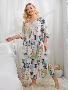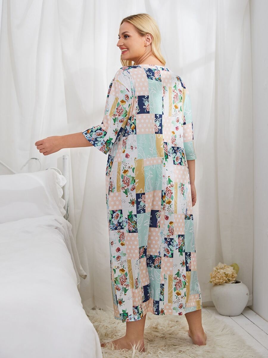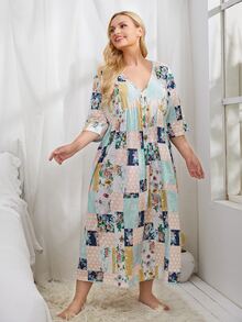 Plus Patchwork Print Smock Nightdress