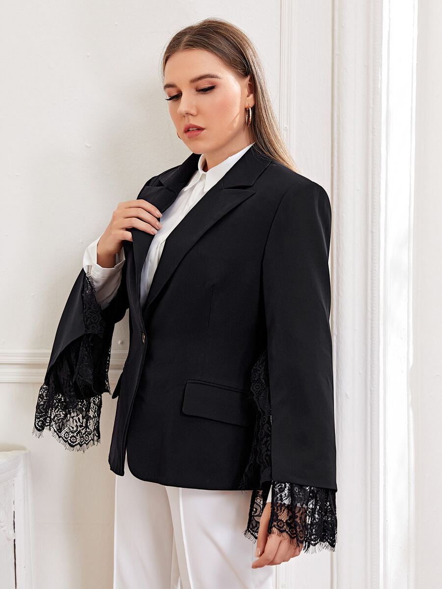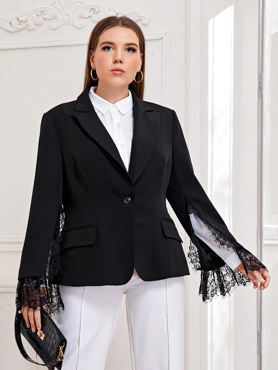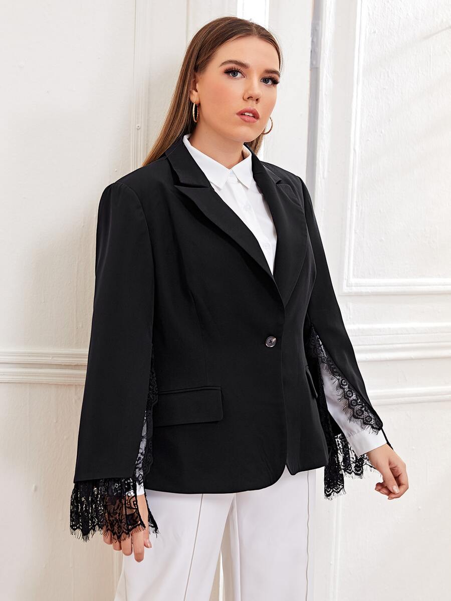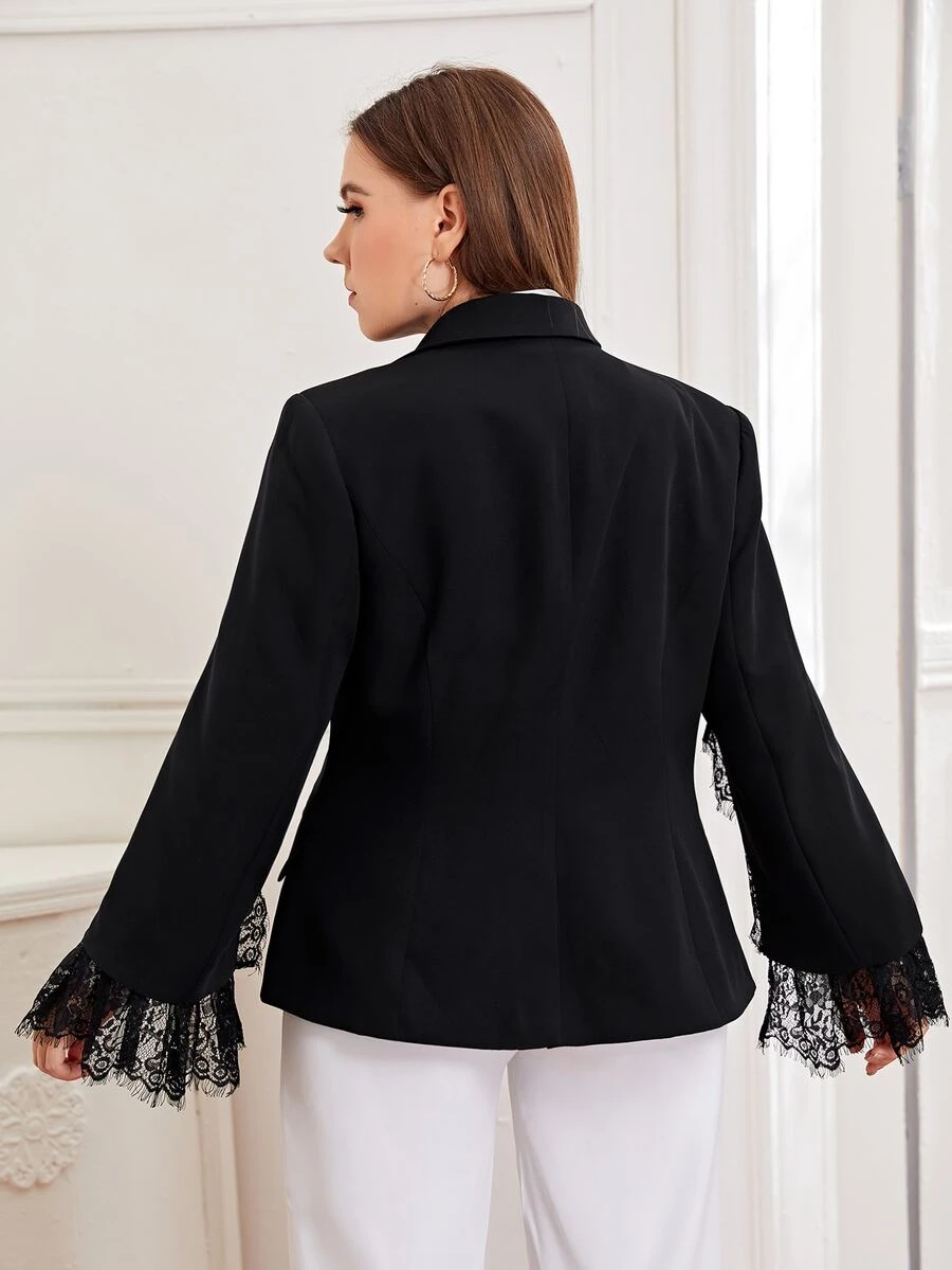Plus Peak Collar Lace Trim Split Sleeve Blazer