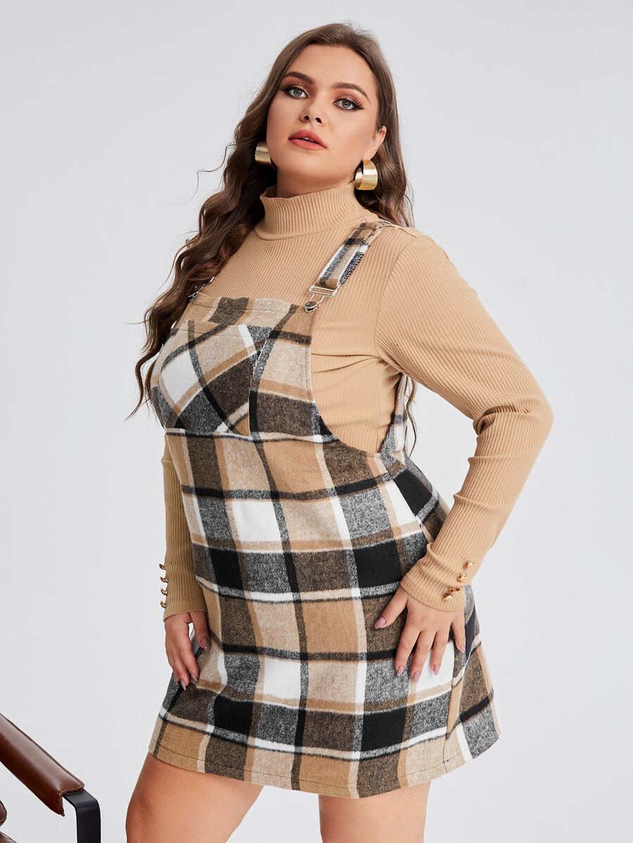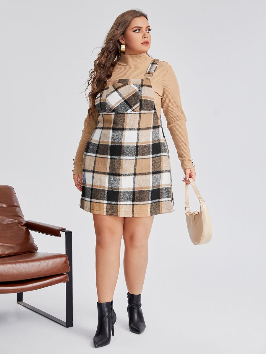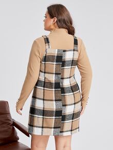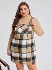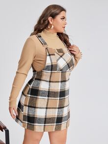 Plus Plaid Print Wool-Mix Overall Dress Without Top