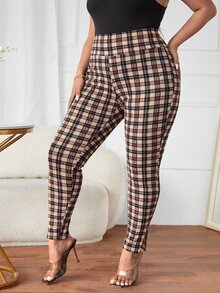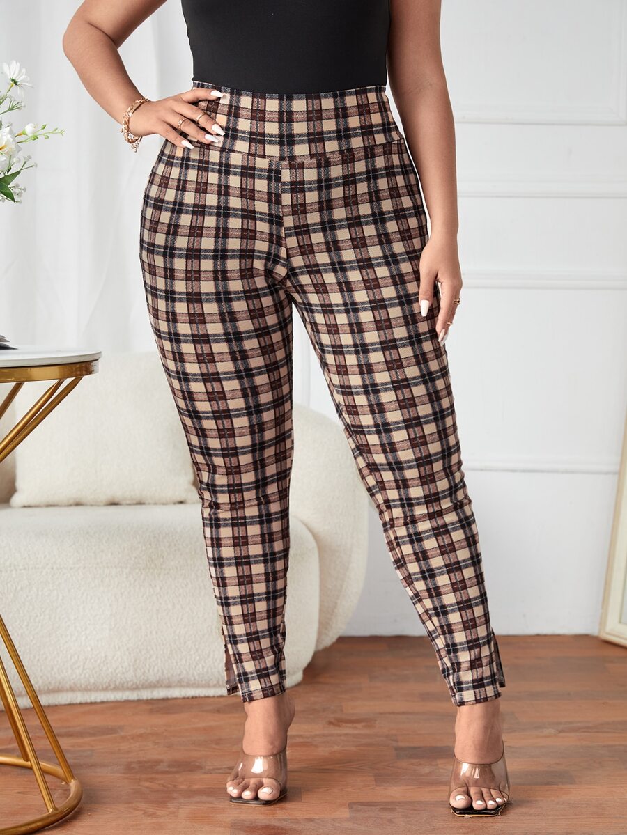 Plus Plaid Wideband Waist Leggings