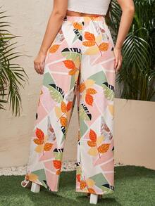 Plus Plants Print Wide Leg Pants