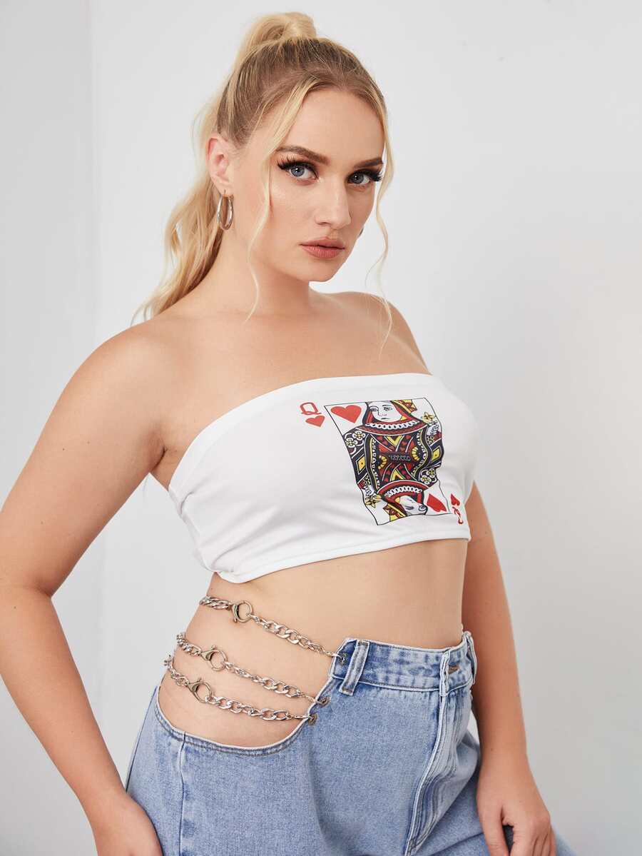 Plus Playing Card Print Crop Tube Top