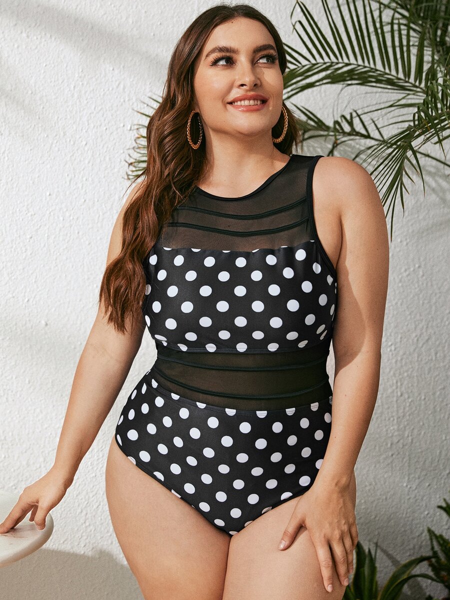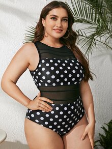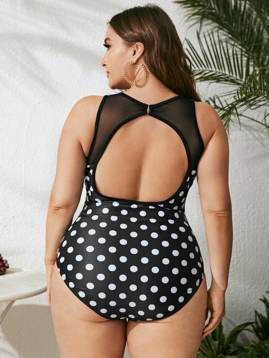Plus Polka Dot Contrast Mesh One Piece Swimsuit