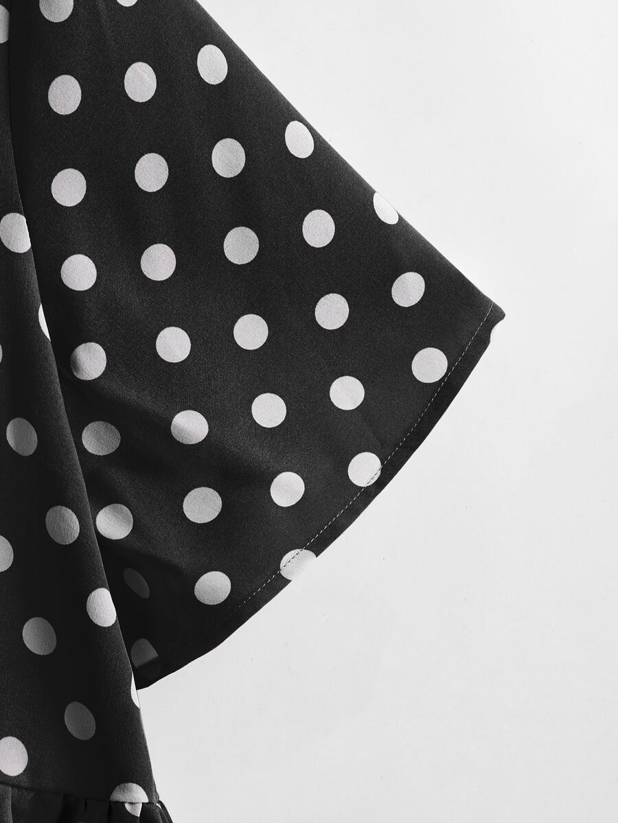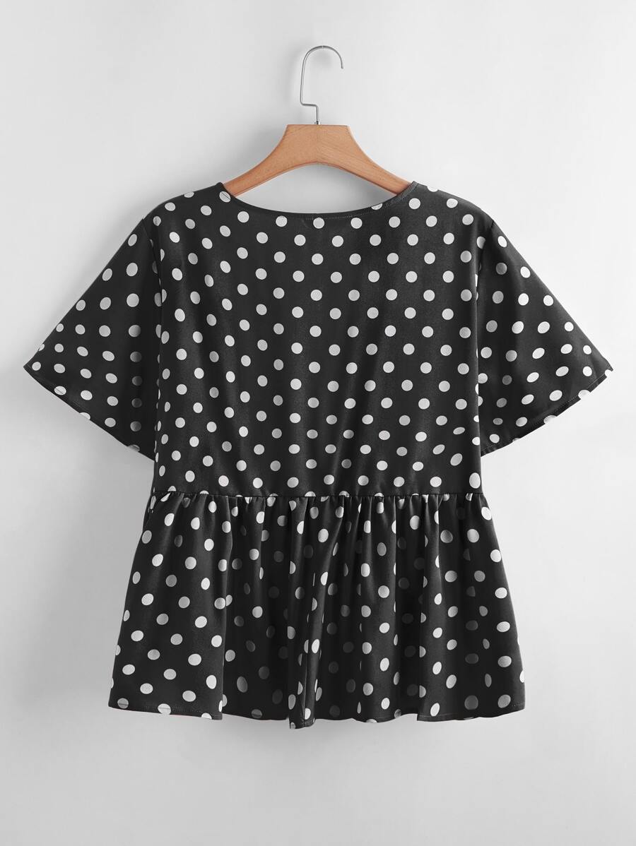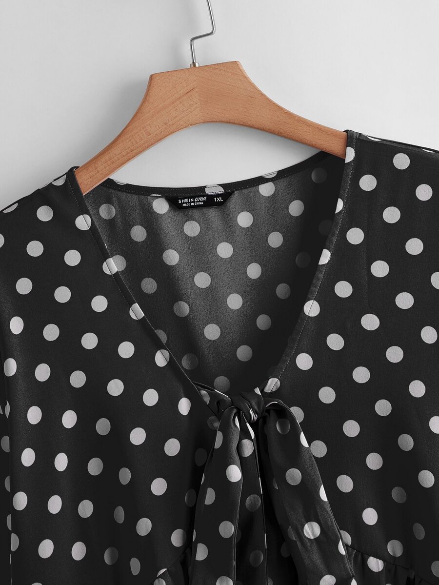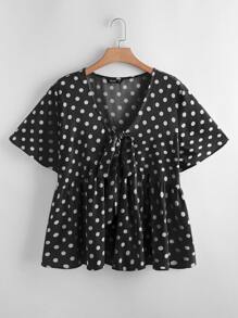 Plus Polka Dot Tie Front Babydoll Blouse