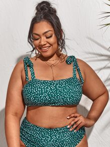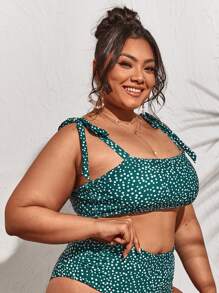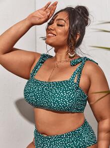 Plus Polka Dot Tie Shoulder Bikini Top