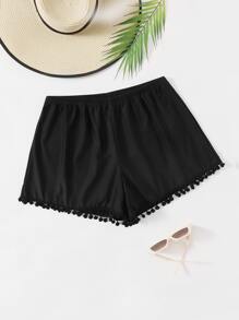 Plus Pom-pom Trim Bikini Shorts