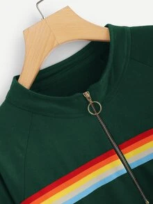 Plus Quarter Zip Rainbow Striped Sweatshirt