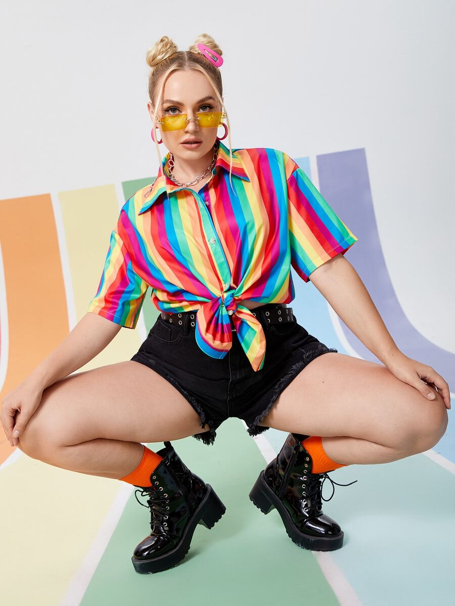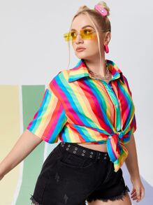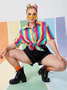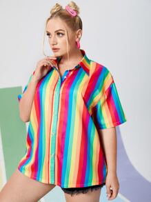 Plus Rainbow Striped Button Up Shirt