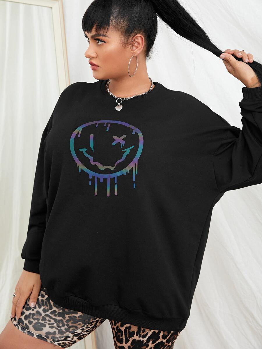 Plus Reflective Expression Print Drop Shoulder Sweatshirt Graduation,Back To School Outfits,Graduation,Teacher Outfits For Women,Back To School
