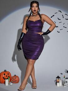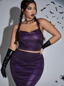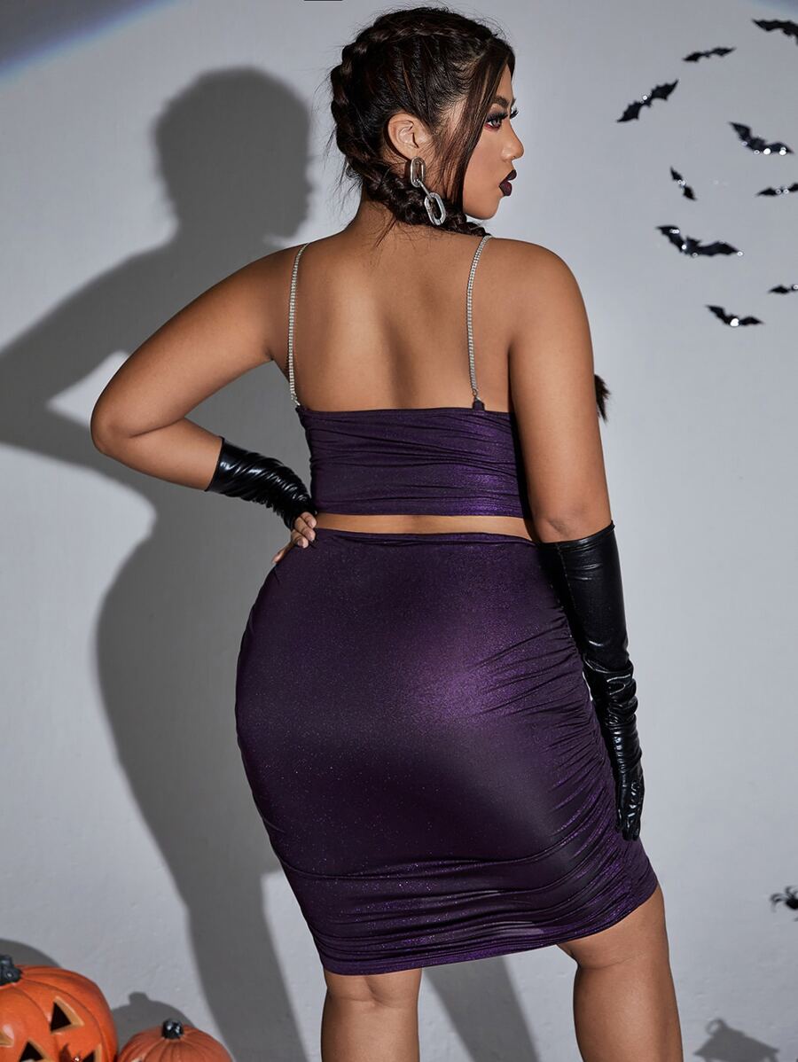 Plus Rhinestone Chain Draped Crop Glitter Cami Top & Bodycon Skirt