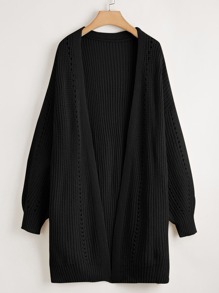 Plus Ribbed Knit Drop Shoulder Cardigan, Winter Fall Cloth For Women Autumn