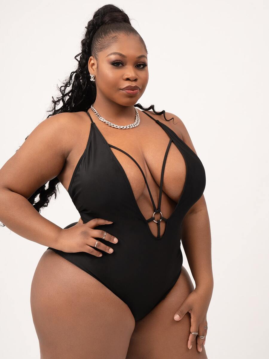 Plus Ring Linked Plunging One Piece Swimsuit