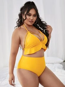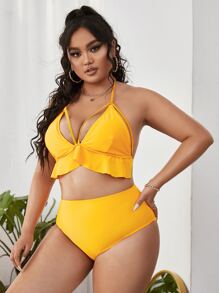 Plus Size Ruffle Hem Harness Bikini Set Summer Beach