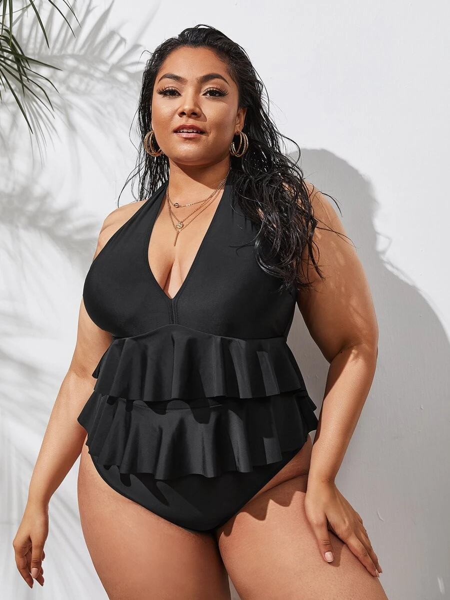 Plus Ruffle Hem One Piece Swimsuit