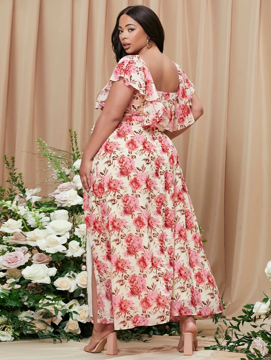 Plus Ruffle Hem Split Thigh Allover Floral Dress