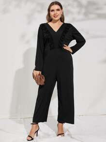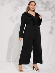Plus Ruffle Trim Wide Leg Jumpsuit