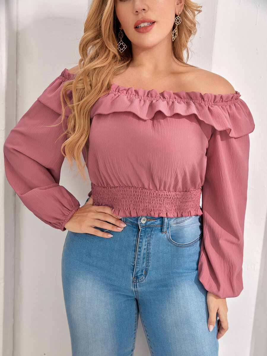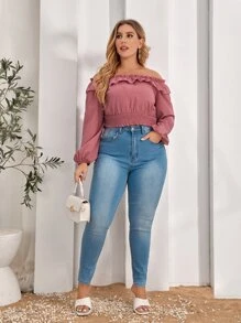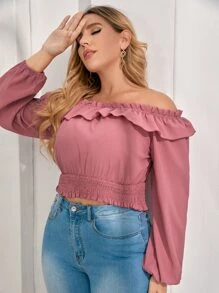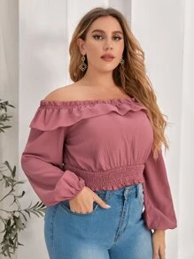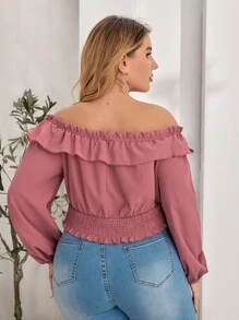 Plus Ruffle Trimed Shirred Bardot Blouse