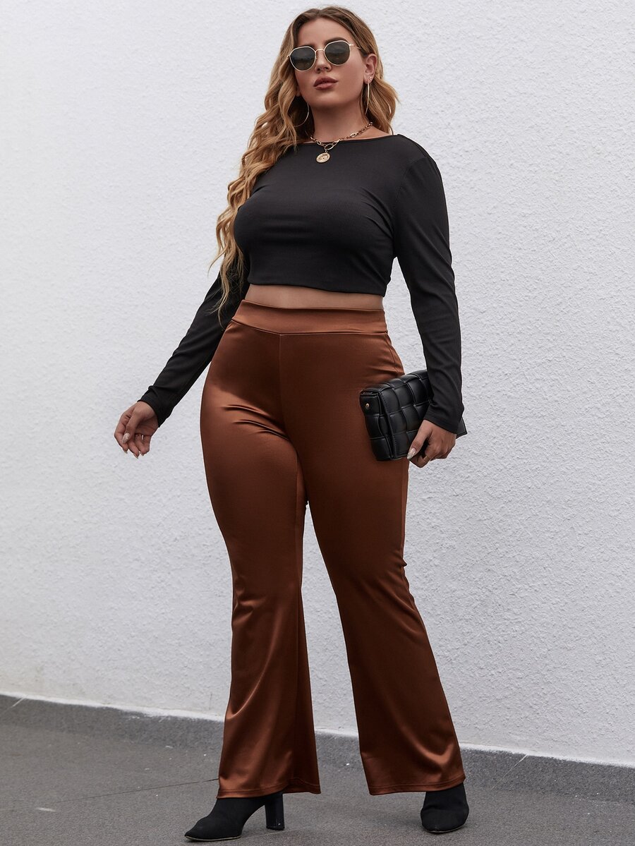 Plus Satin Flare Leg Pants