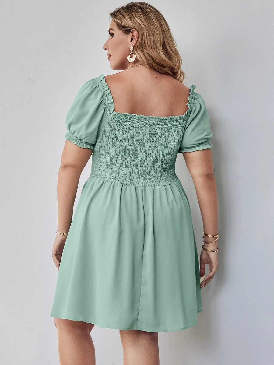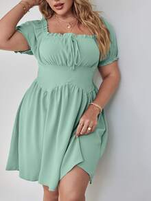 Plus Scoop Neck Puff Sleeve Solid Dress