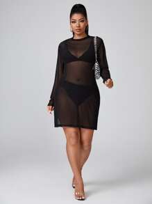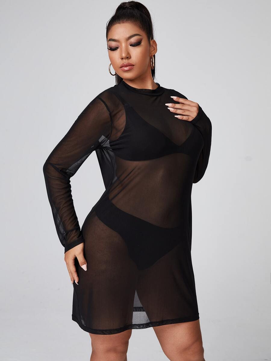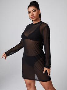Plus Sheer Mesh Dress Without Lingerie