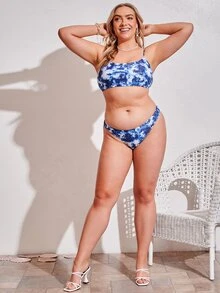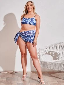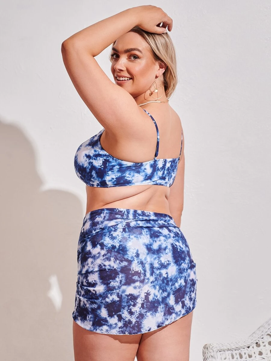 Plus Size 3packs Tie Dye Bikini Set & Beach Skirt Summer Beach