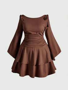 Plus Size Backless Off-Shoulder Bodycon Mini Dress, Slimming