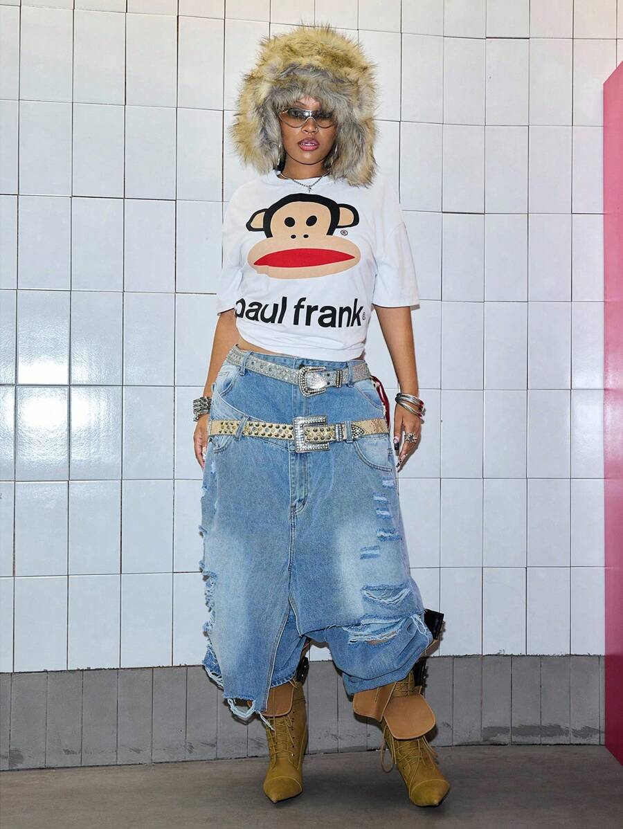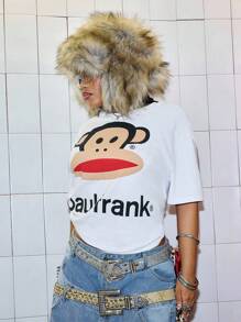 Paul Frank X ROMWE Plus Size Cute Street Fashion Logo Animal Pattern Women T-Shirt