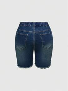 Grunge Punk Plus Size Distressed Design Gradient Denim Blue Casual Punk Style Denim Shorts