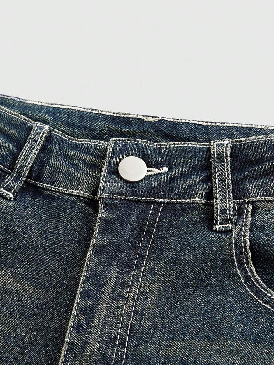 Grunge Punk Plus Size Distressed Embroidered Pocket Flare Leg Jeans