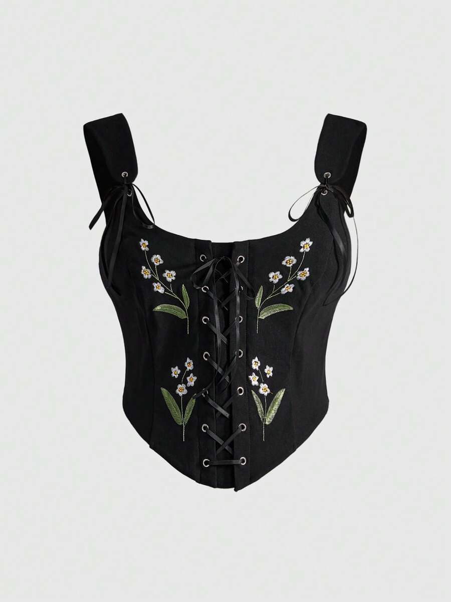 Fairycore Plus Size Floral Embroidered Vintage Palace Style Camisole And Tank Top