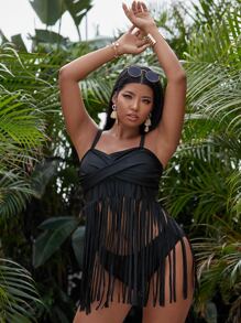 Plus Size Fringe Hem Twist Front Tankini Summer Beach