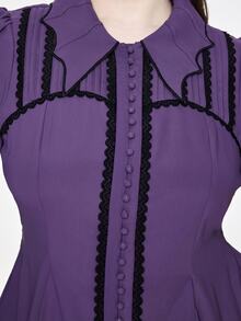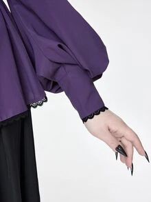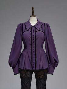 Goth Plus Size Gothic Bat Collar Lantern Sleeve A-Line Shirt For Halloween