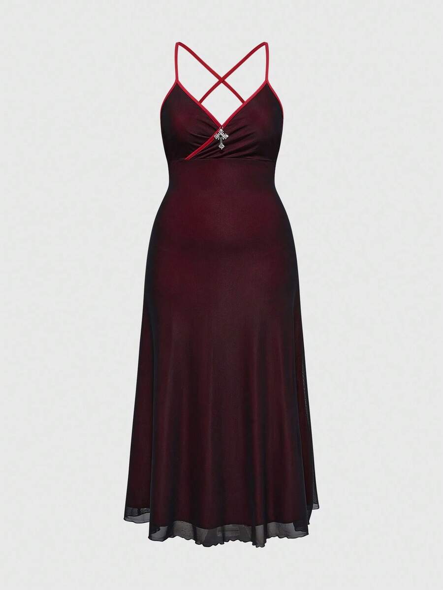 Goth Plus Size Gothic Cross Metal Pendant Mesh Dress/Christmas
