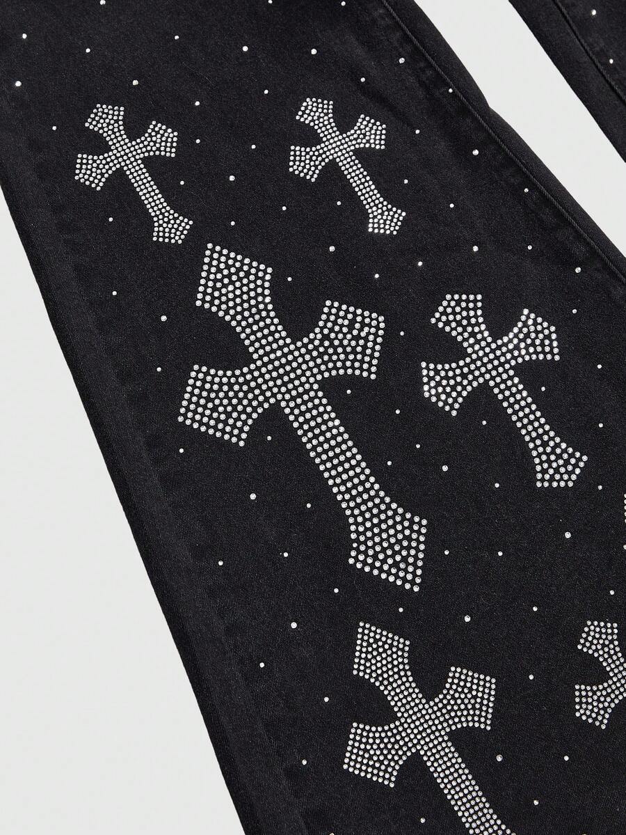 Plus Size Gothic Cross Rhinestone Distressed Flare Jeans