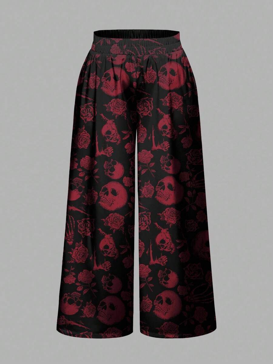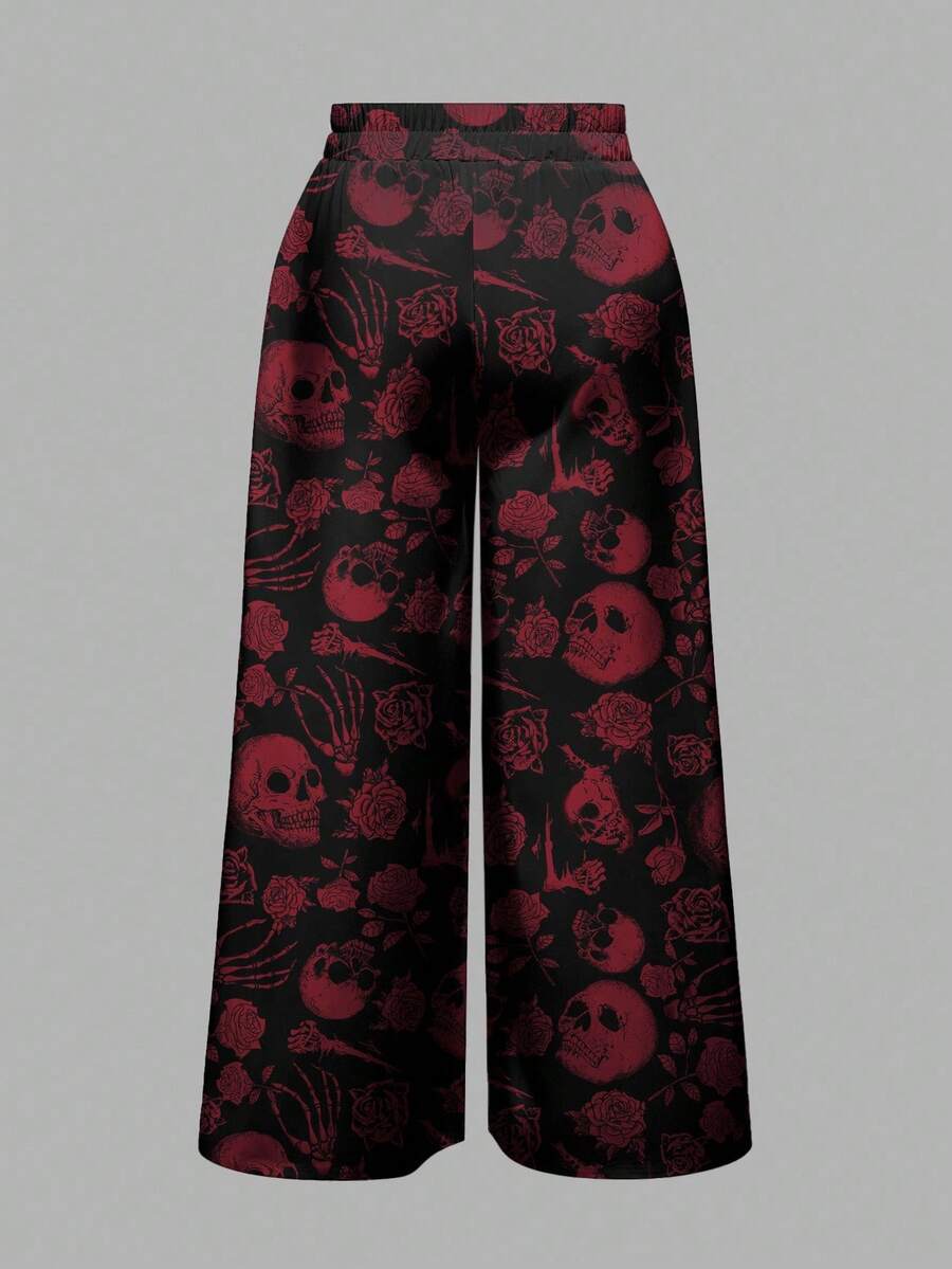 Plus Size Gothic Dark Horror Mysterious Sexy Rose Flower Red All-Over Print Loose Wide Leg Pants