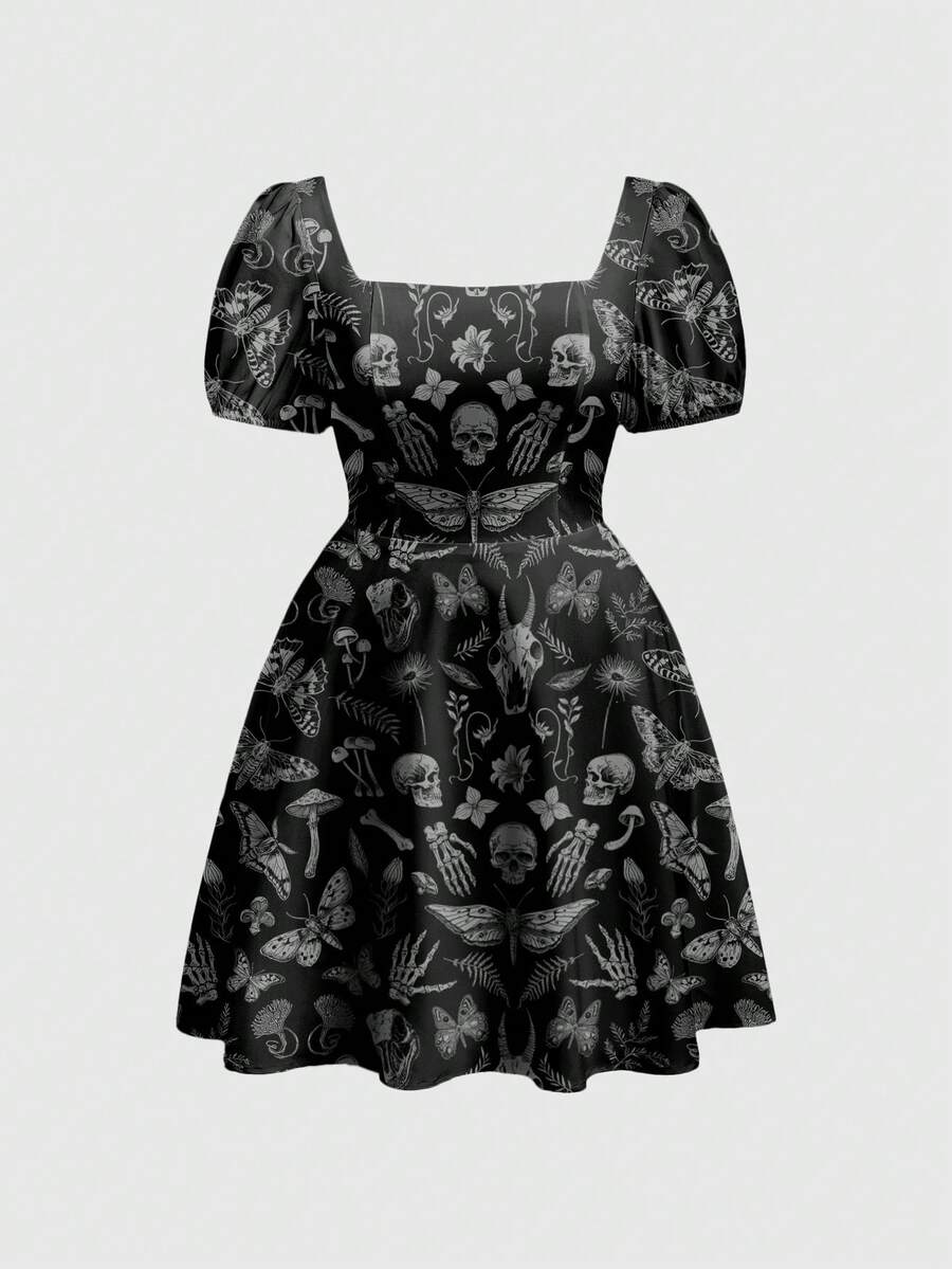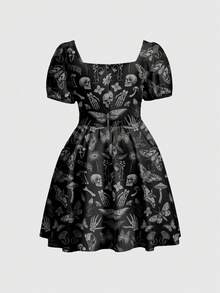 Plus Size Gothic Punk Dark Palace Low-Cut Dress