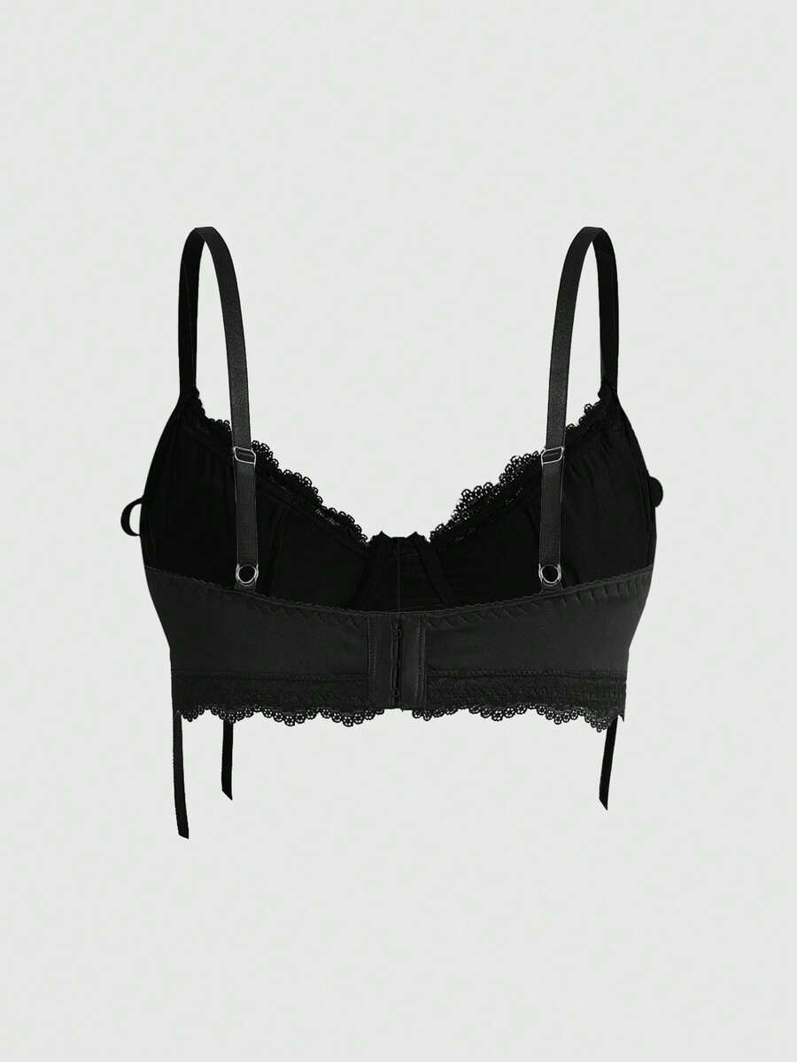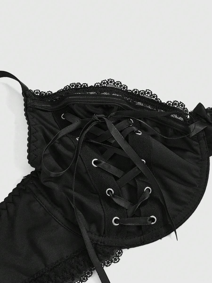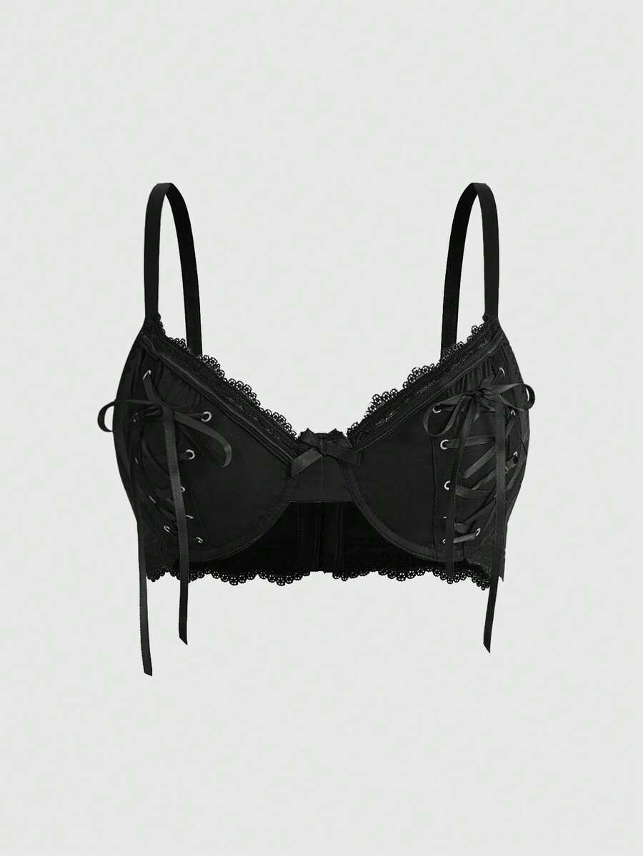 Plus Size Gothic Underwire Lace Grommet Lace-Up Bow Bralette For Women